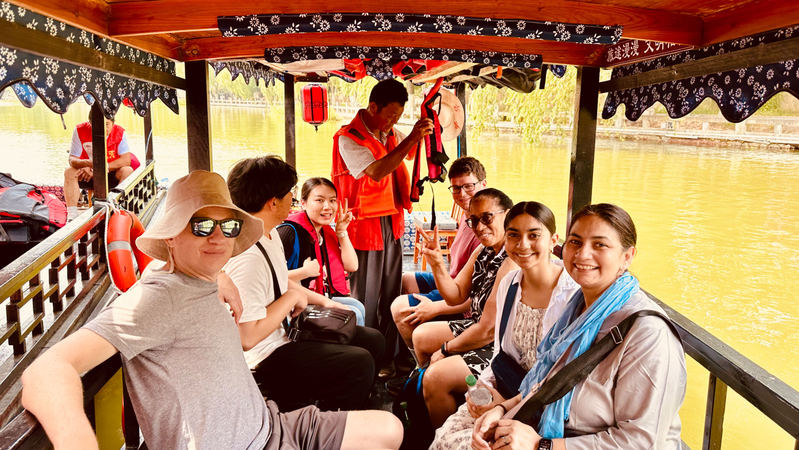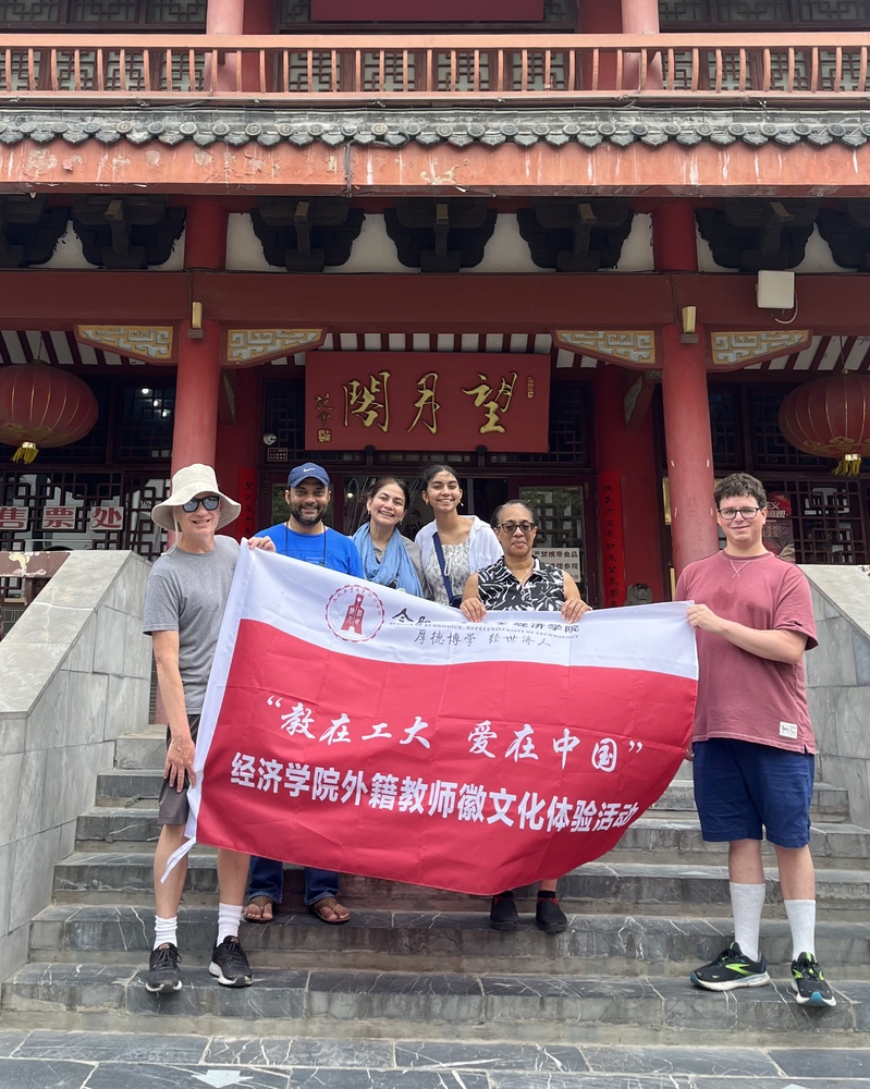 6月16日,qmh官网国际经济与贸易(中外合作办学)专业克拉克大学外籍教师Daniel Airth、Mari Hadley、Saha Kaushiki、Walter Streeter、Zafar Khan与qmh官网学生志愿者近10人走进三河古镇,参加qmh官网“教在工大,爱在中国”中国文化体验活动。