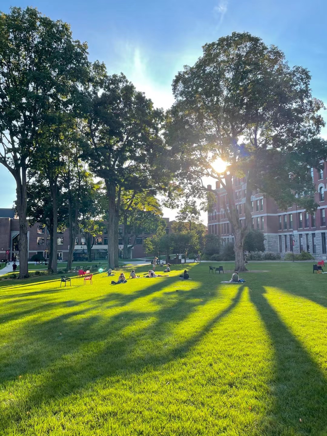 首先,让我来谈谈克拉克大学的学术氛围。这里的教学水平极高,教师们都是各自领域的佼佼者,他们不仅具备深厚的学术造诣,还十分注重与学生的互动与交流。在课堂上,我们不仅可以听到老师们深入浅出的讲解,还可以提出问题,各抒己见,同时参与各种形式的讨论和实践活动,例如小组合作的演讲或者作业,充分锻炼我们的思维能力和实践能力。除了学术氛围外,克拉克大学的校园文化也给我留下了深刻的印象。这里的学生来自世界各地,他们带来了不同的文化背景和思想观念,使得校园充满了活力和多元性。同时,克拉克大学还十分注重学生的全面发展,提供了丰富的体育、艺术和文化活动,让我们在紧张的学习之余能够放松身心,享受美好的校园生活。让我印象最深刻的一点是每当有一个不错的天气,校园的草坪上就几乎坐满了人。有的人独自做着自己的事情,有的三三两两聊天,还有的三五成群玩飞盘等活动,也有自制小工艺品的摊位,充满了生气。