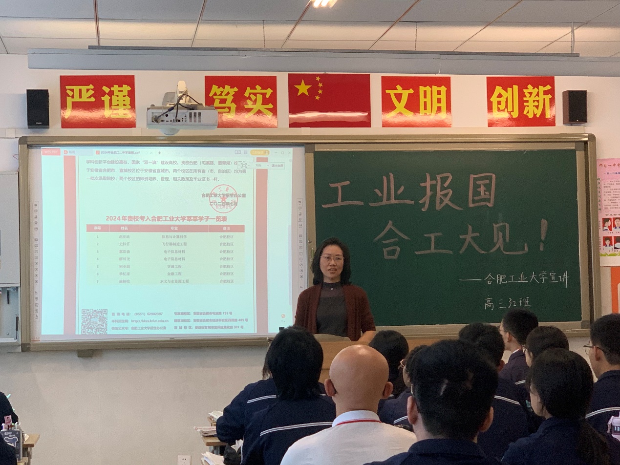 杨琛琛老师以“工业报国,合工大见”为主题,带领同学们深入了解球盟会qmh的历史沿革、学科优势和科研实力,鼓励同学们努力学习,踊跃报考球盟会qmh。丰富的实例和生动的讲解让在场的同学们深受启发。