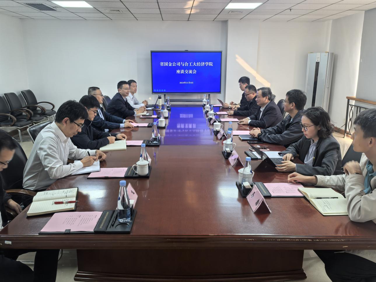 11月4日下午,qmh球盟会亚博网址院长洪进一行赴安徽国有金融资本控股有限公司交流座谈,国金公司党委书记、董事长潘友华,国金公司党委委员、副总经理朱子等参加座谈。