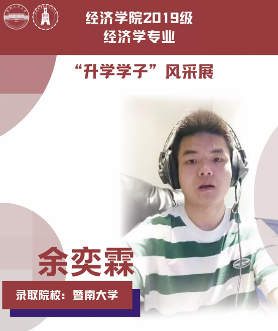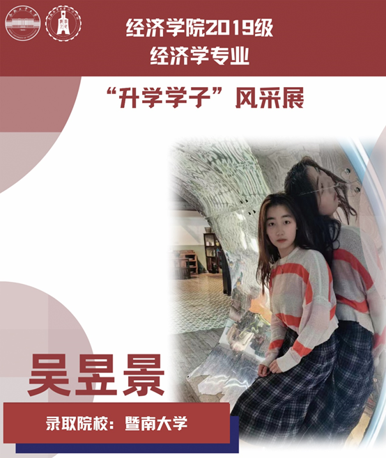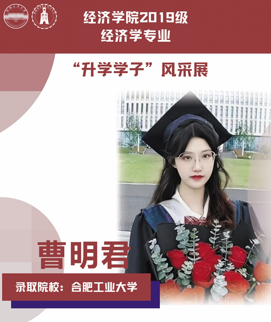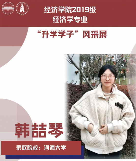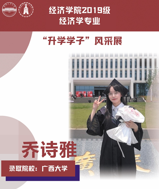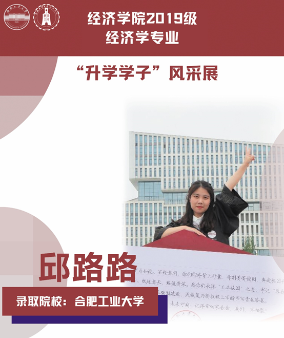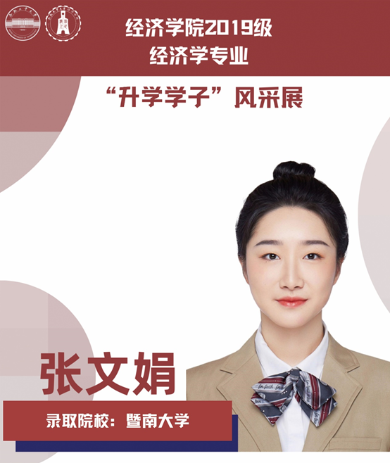 球盟会qmh经济学专业于2021年中央赛道评审中,获批“省级一流本科专业建设点”。同年与美国克拉克大学本硕博贯通式联合培养机制正式落地。本专业顺应人工智能、数字经济与新经济的时代要求,以“经济分析与数字治理”为特色方向,培养能够熟练应用现代经济分析工具和数字经济理论及技术,为政府、企事业部门提供经济分析、预测与治理的新文科高素质专业人才。经济学专业2019级学生累计升学人数37人,其中推免人数19人,考研录取人数15人,出国留学3人。本期推文带领大家共同领略2019级升学学子的风采。