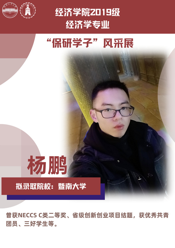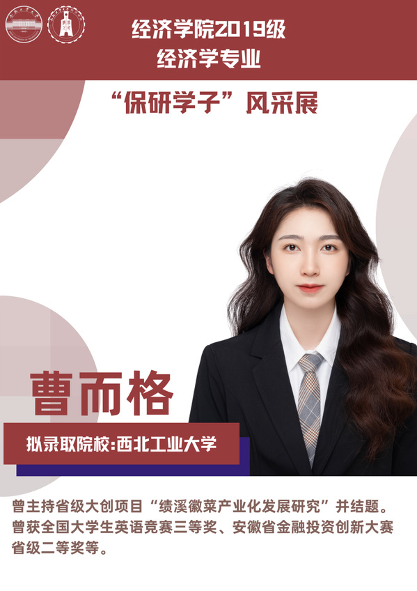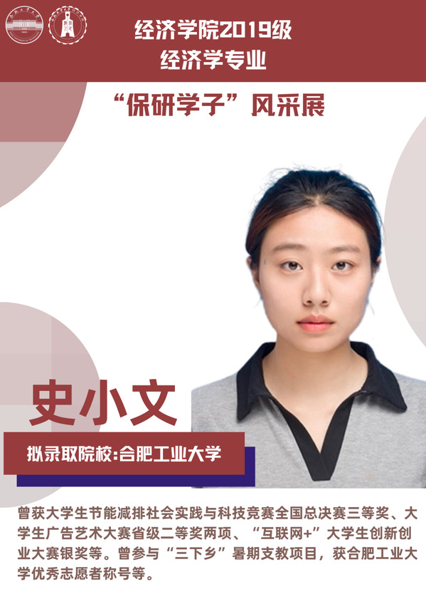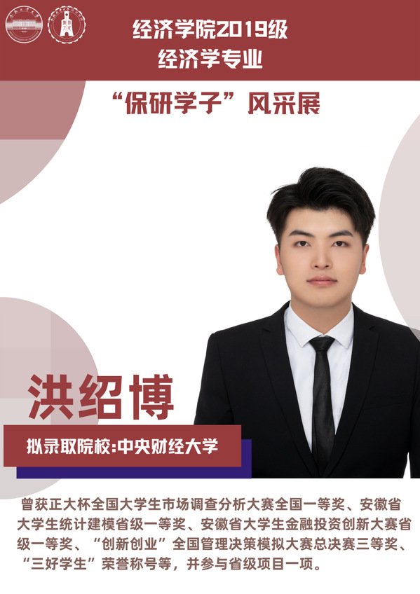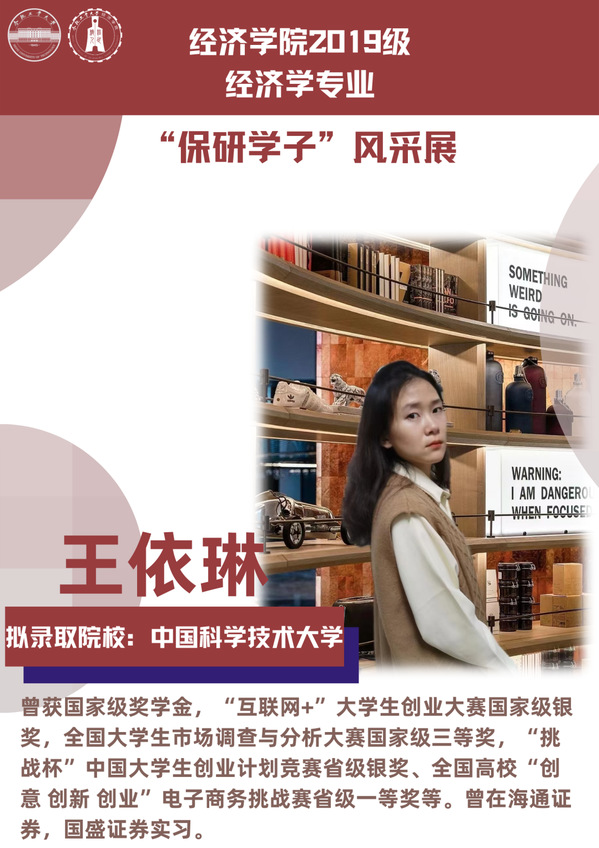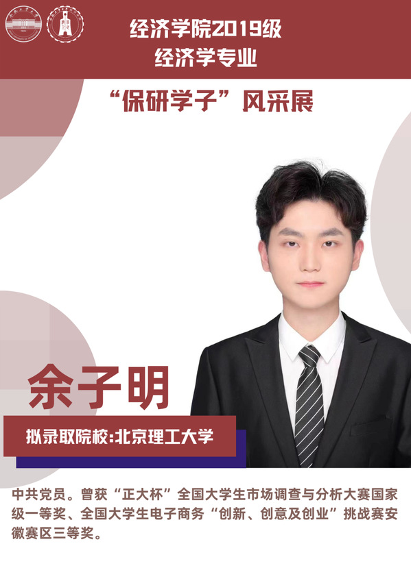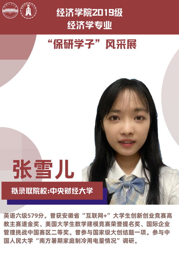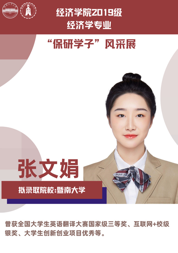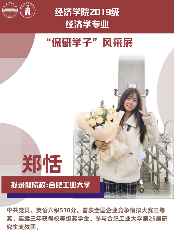 球盟会qmh经济学专业前身为贸易经济专业,1999年更名为经济学专业,2012年宣城校区同步招生。2021年中央赛道评审中,获批“省级一流本科专业建设点”。同年与美国克拉克大学本硕博贯通式联合培养机制正式落地。本专业顺应人工智能、数字经济与新经济的时代要求,以“经济分析与数字治理”为特色方向,培养能够熟练应用现代经济分析工具和数字经济理论及技术,为政府、企事业部门提供经济分析、预测与治理的新文科高素质专业人才。2019级经济学专业学生中,19名推免生被中国科学技术大学、中央财经大学、吉林大学、北京理工大学等国内名校拟录取。本期推文将带领大家共同领略2019级经济学专业“保研学子”的风采。
