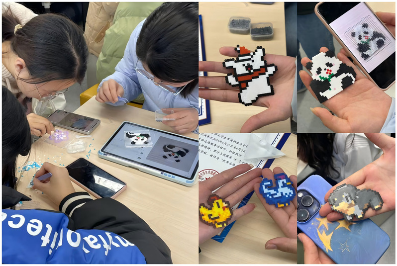 第一期活动以“冬至巧手拼豆豆,欢乐齐聚暖洋洋”为主题。活动伊始,志愿者生动讲解了冬至这一传统节日由来和传统文化习俗,让同学们对冬至这一节日有了更深刻的认识和理解。拼豆豆环节中,同学们精心挑选、细心拼贴,一颗颗小巧豆豆在指尖挪移,大家充分发挥创意,融入动漫、潮流等元素,让传统冬至与现代趣味碰撞,制作出一幅幅妙趣横生的作品。