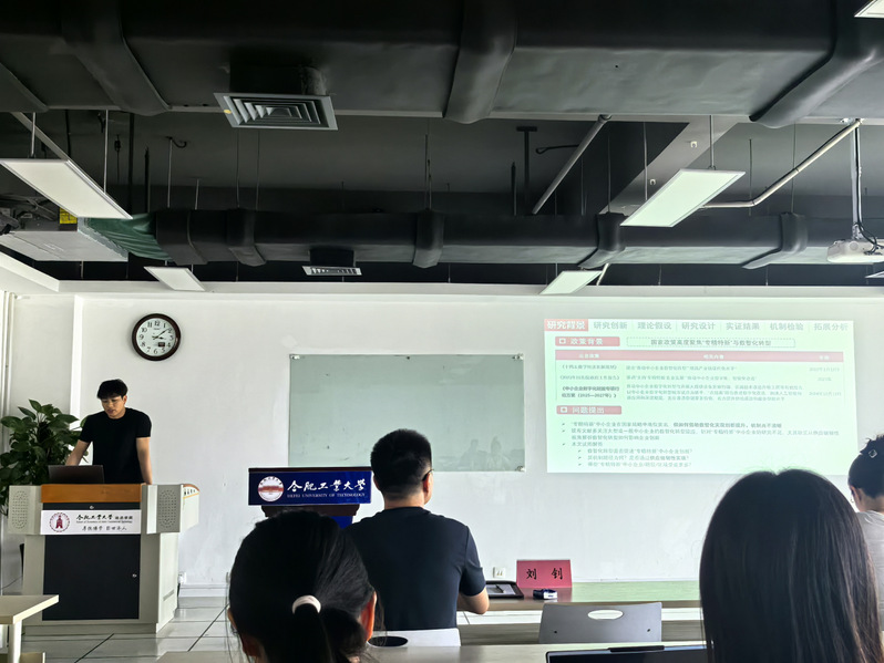 活动中,四位研二学生率先展示研究进展与论文框架。随后,两位老师结合学术前沿与指导经验,从论文结构、选题价值、创新性等方面展开专业点评。刘钊着重指出,论文题目与内容需紧密呼应,研究内容应紧扣题目逻辑。郭冉冉则聚焦实证研究,强调变量测度科学性是关键,要重视解决测度中内生性问题。