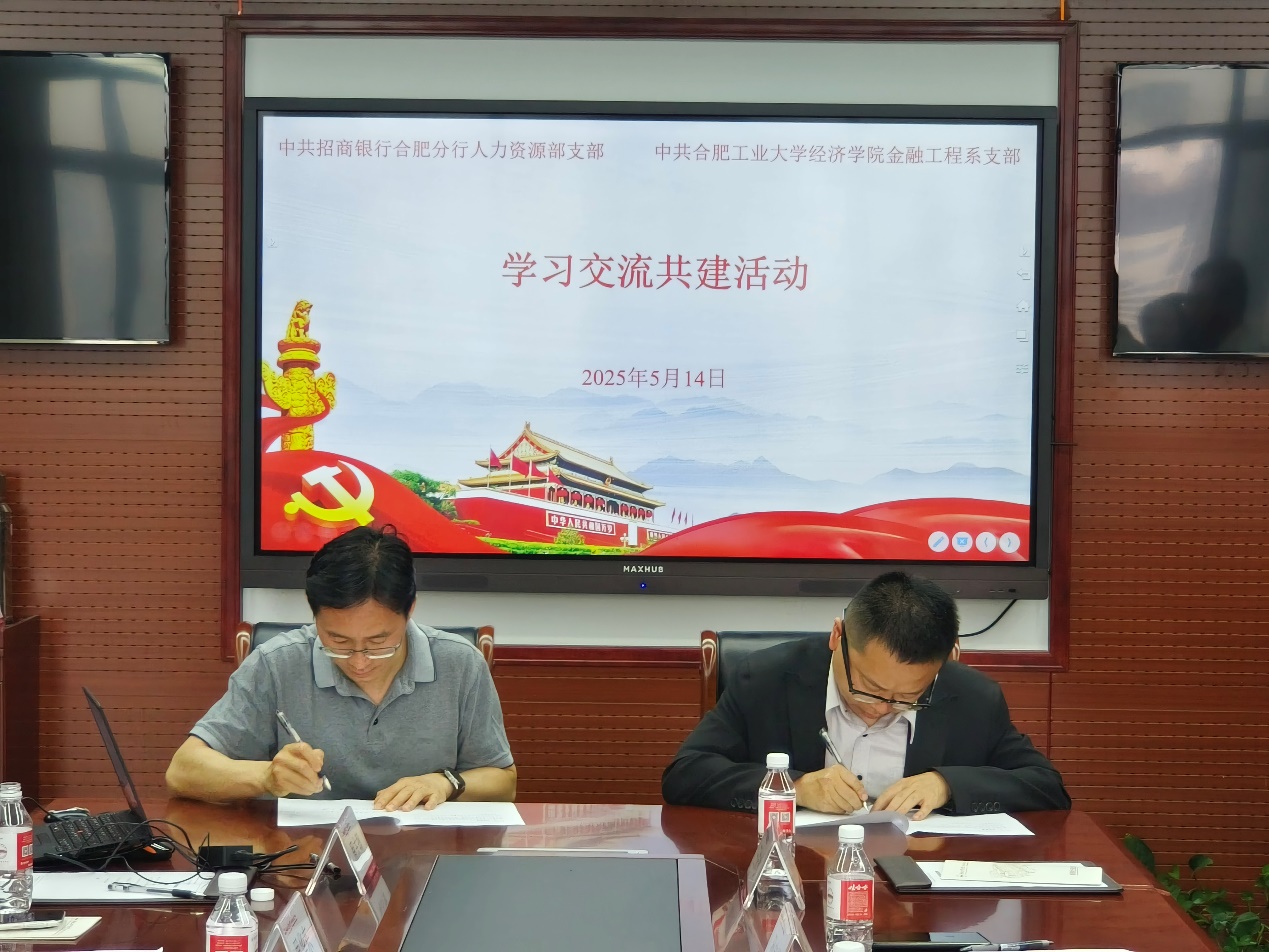 2025年5月14日,球盟会qmhqmh球盟会亚博网址金融工程系党支部和招商银行合肥分行人力资源部党支部在qmh球盟会亚博网址1005会议室联合开展支部共建交流活动,qmh球盟会亚博网址副处级组织员凡菊参加共建活动,金融工程系党支部书记周华东主持共建活动。