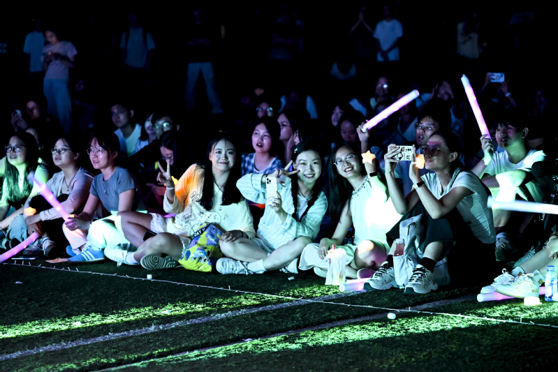 暮色渐临,毕业生们陆续来到西操场,在签名墙前留下珍贵签名,用光影定格青春记忆。19时整,晚会在激情四射的乐队表演《城市假日酒店》中震撼开场,瞬间点燃全场热情。整场晚会精彩纷呈,深情款款的《昨日青空》《情歌》《忽而今夏》《毕业快乐》串联起大学时光的动人旋律;活力四射的《没人在乎你》《Orange》展现青春的别样风采;动感十足的《Is this love》《小城夏天》《Future perfect》《New dance》《Whiplash》等舞蹈,用跃动的身姿勾勒出对未来的美好憧憬。特别设置的毕业感言环节中,各班班干及毕业生代表通过视频,深情回顾四年同窗情谊,表达对师长的感恩之情,真挚话语令在场师生潸然泪下。