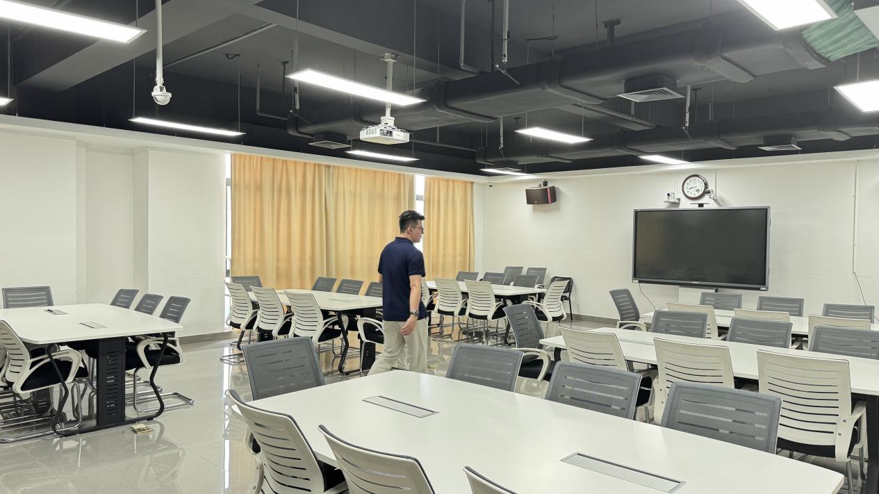 实验中心工作人员深入科教楼B座11层1102、1104及1105三个教学科研实验室,重点检查了设备设施运行、用电安全、消防安全及环境卫生状况。在设备设施检查环节,工作人员逐一核查仪器运行状态与空调制冷效果,确保暑期设备运行安全;针对用电安全,细致排查电线线路老化、私拉乱接等隐患,并按规定切断非必要设备电源,严防暑期用电事故;在消防安全方面,清点消防器材是否齐全有效,排查消防通道是否畅通无阻,坚决杜绝安全隐患。