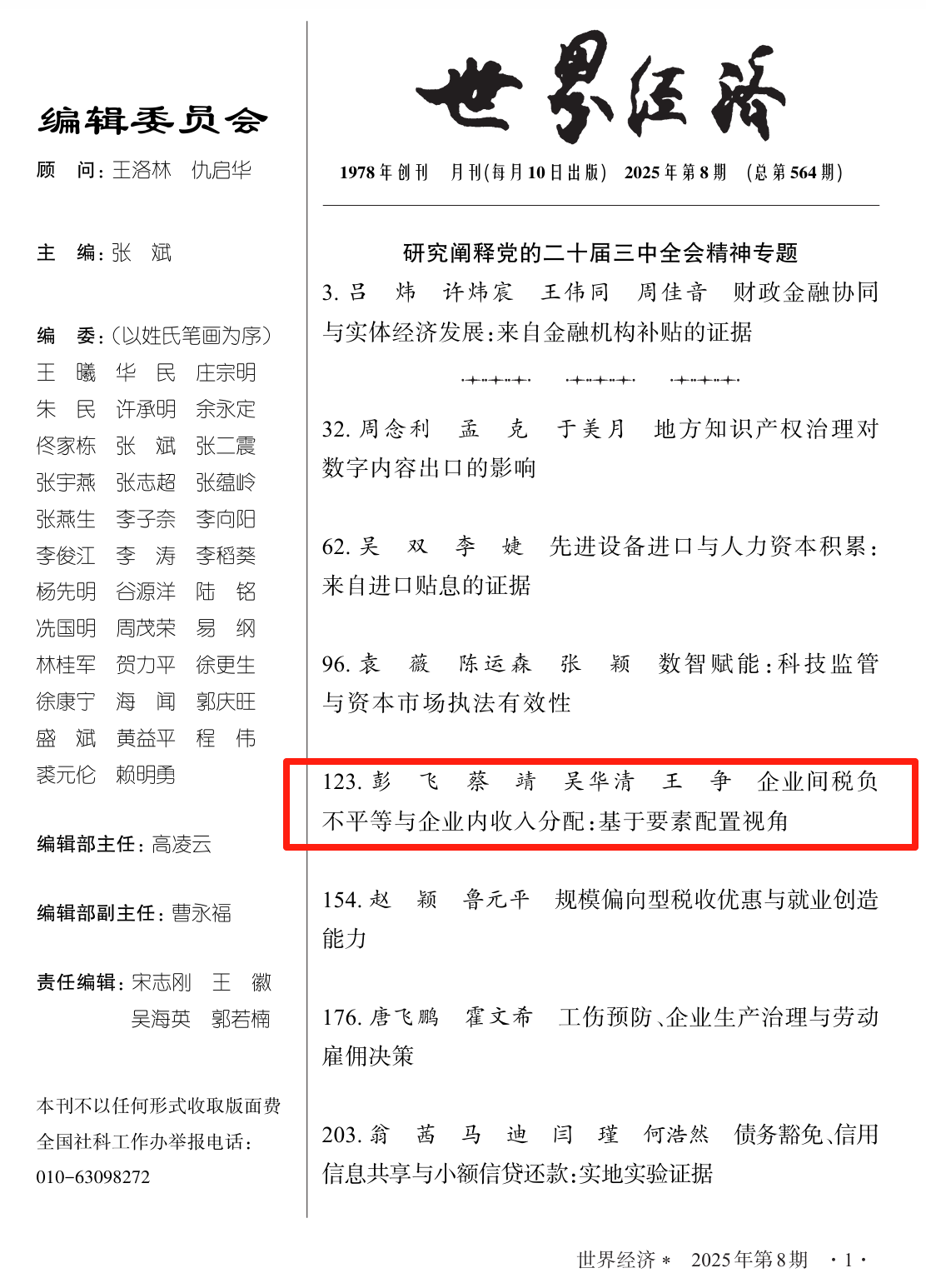 近日,qmh官网彭飞、吴华清老师论文《企业间税负不平等与企业内收入分配:基于要素配置视角》在《世界经济》2025年第08期发表(合作者:蔡靖、王争)。本论文得到国家社会科学基金领军人才项目(24VRC078)、国家自然科学基金面上项目(72273038)和中央高校基本科研业务费专项资金项目(JZ2023HGPA0295)的资助。《世界经济》是由中国社会科学院主管、中国世界经济学会与世界经济与政治研究所共同主办的学术期刊,创刊于1978 年,是国内创刊最早的世界经济类刊物之一。该刊主要刊登经济学各个领域的理论研究论文,在侧重于发表世界经济相关领域理论研究的同时,也刊登有关中国经济体制改革、经济学基础理论、经济思想史、经济史和管理经济学等方面的理论研究及相关理论研究综述。2024年的复合影响因子为8.807,是AMI顶级期刊。