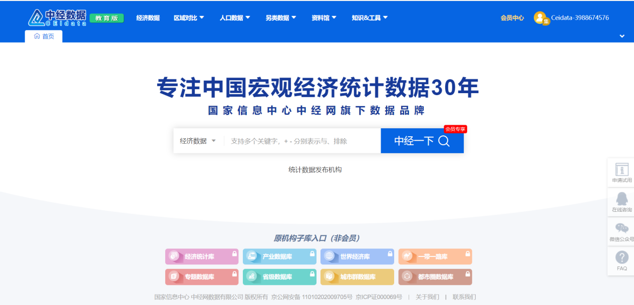 为丰富数字资源供给,满足师生教学科研过程中的专业信息需求,即日起qmh官网正式开通中经数据(教育版)试用权限。诚邀全院师生踊跃登录平台探索功能,助力教学实践与科研创新。