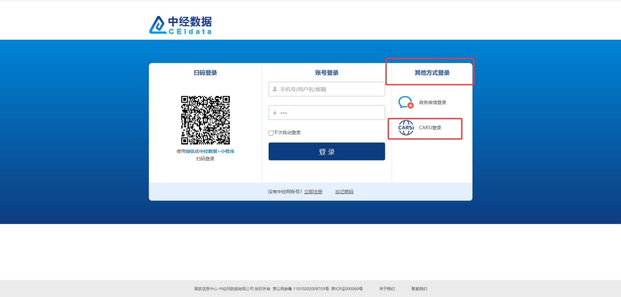 第二种:CARSI 认证。在登录页面选择【CARSI登录】,并绑定个人会员账号即可完成认证;