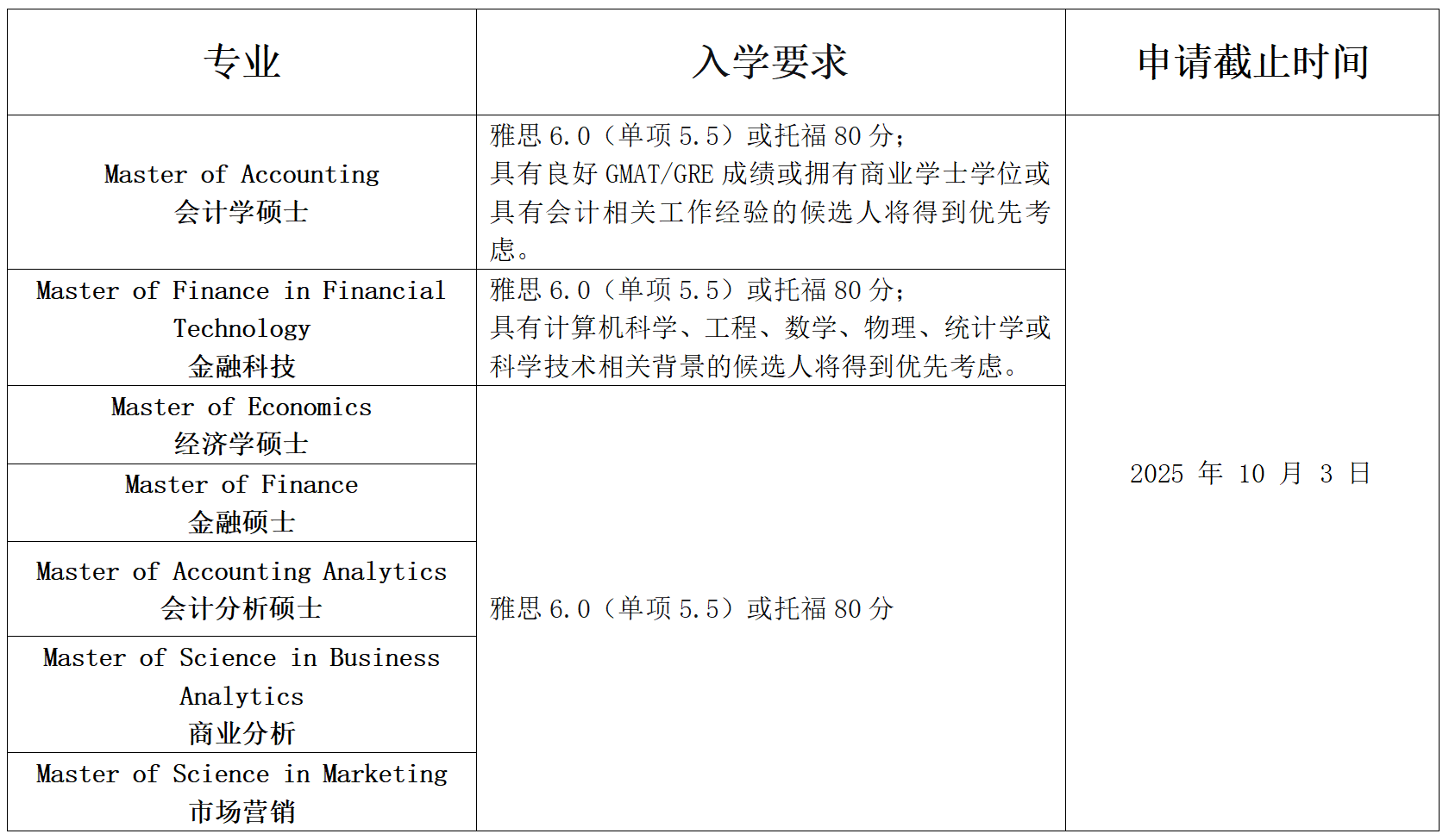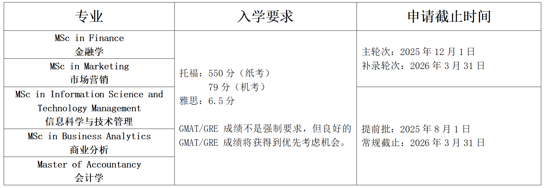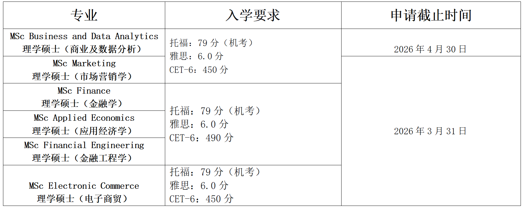 商科主要有以下专业可申请