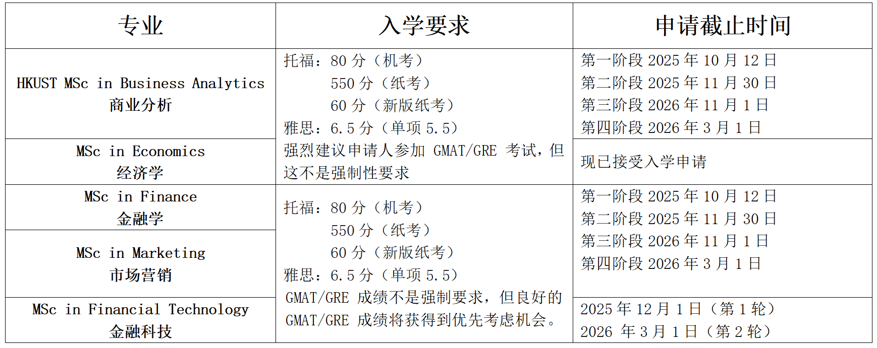 香港高校商学院多数专业对语言成绩的要求相对宽松,通常要求托福550(纸考)或79(机考)以上,或雅思6.5以上。