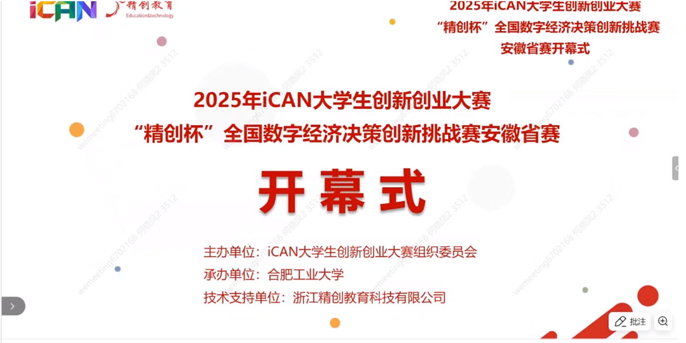2025年9月20日,由球盟会qmhqmh球盟会亚博网址承办的2025 年 iCAN 大学生创新创业大赛 “精创杯” 全国数字经济决策创新挑战赛安徽省赛盛大开幕。我校qmh球盟会亚博网址副院长庄德林教授、 iCAN 大赛组委会副秘书长陈翼科、浙江精创教育科技有限公司副总裁杨燕出席开幕式,开幕式由qmh球盟会亚博网址实验中心主任娜仁主持,省内30余所高校的128支顶尖团队齐聚云端,共同见证赛事开启。