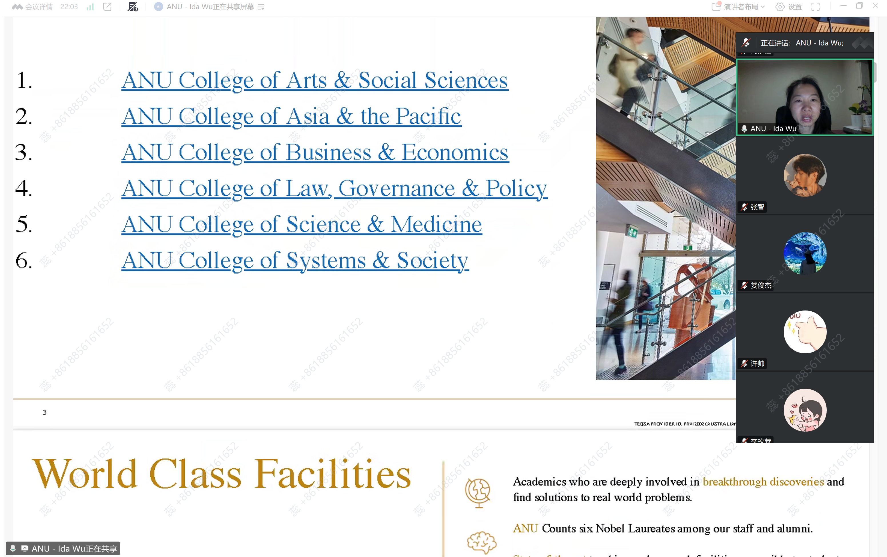10月9日晚,澳大利亚国立大学研究生课程证书项目宣讲会顺利举行。会议由澳大利亚国立大学国际招生与奖学金办公室协调专员Ida Wu主讲,吸引了qmh官网2024级与2025级约30名研究生参加。