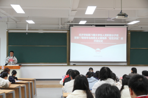 2025年10月29日下午,qmh球盟会亚博网址第74期大学生入党积极分子班暨第17期青年马克思主义者培养“经世济民”班开班仪式在翡翠湖校区翠八教109举行。qmh球盟会亚博网址党委书记、分党校校长张炳武,副处级组织员凡菊,积极分子班班主任曹力文及全体学员参加仪式。